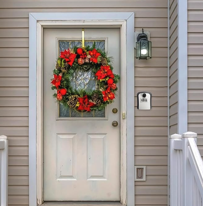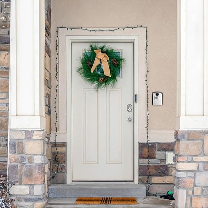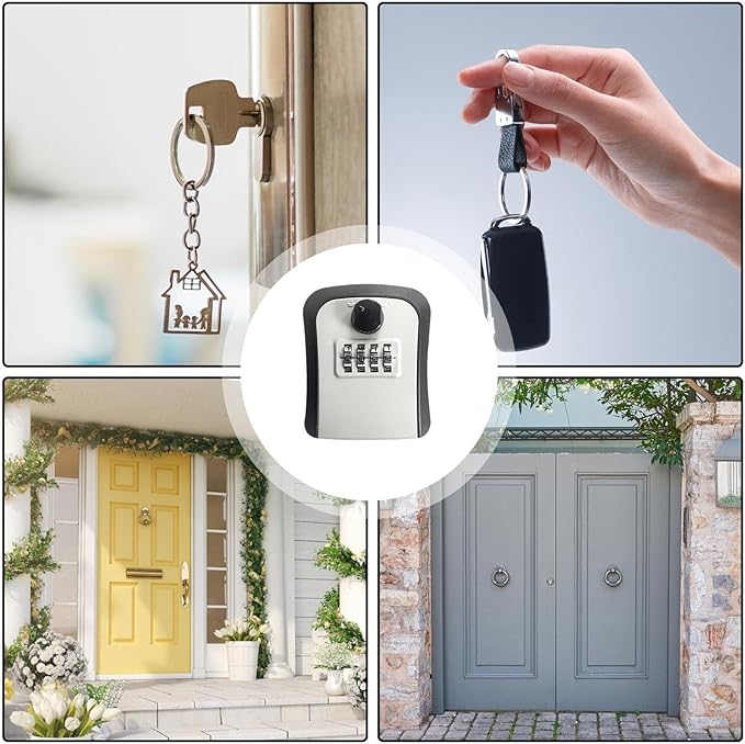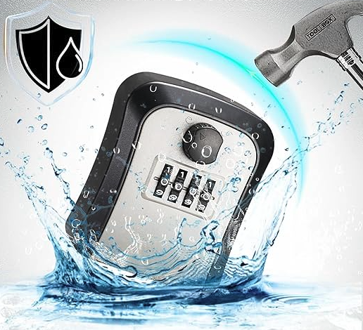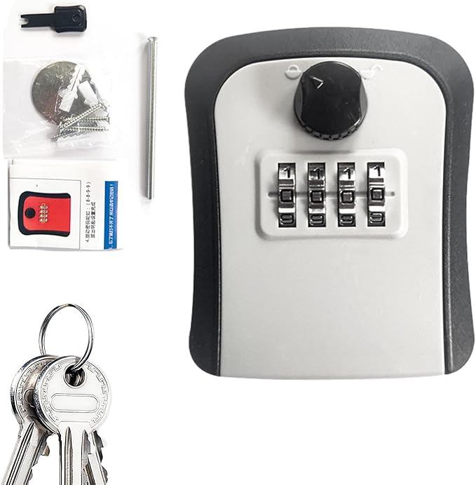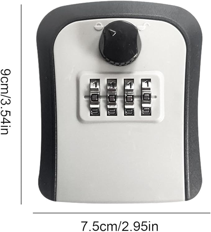هذا صندوق آمن لحفظ المفاتيح يُثبت على الحائط، ويُستخدم لتخزين المفتاح الاحتياطي بطريقة آمنة بدل تركه في أماكن مكشوفة.