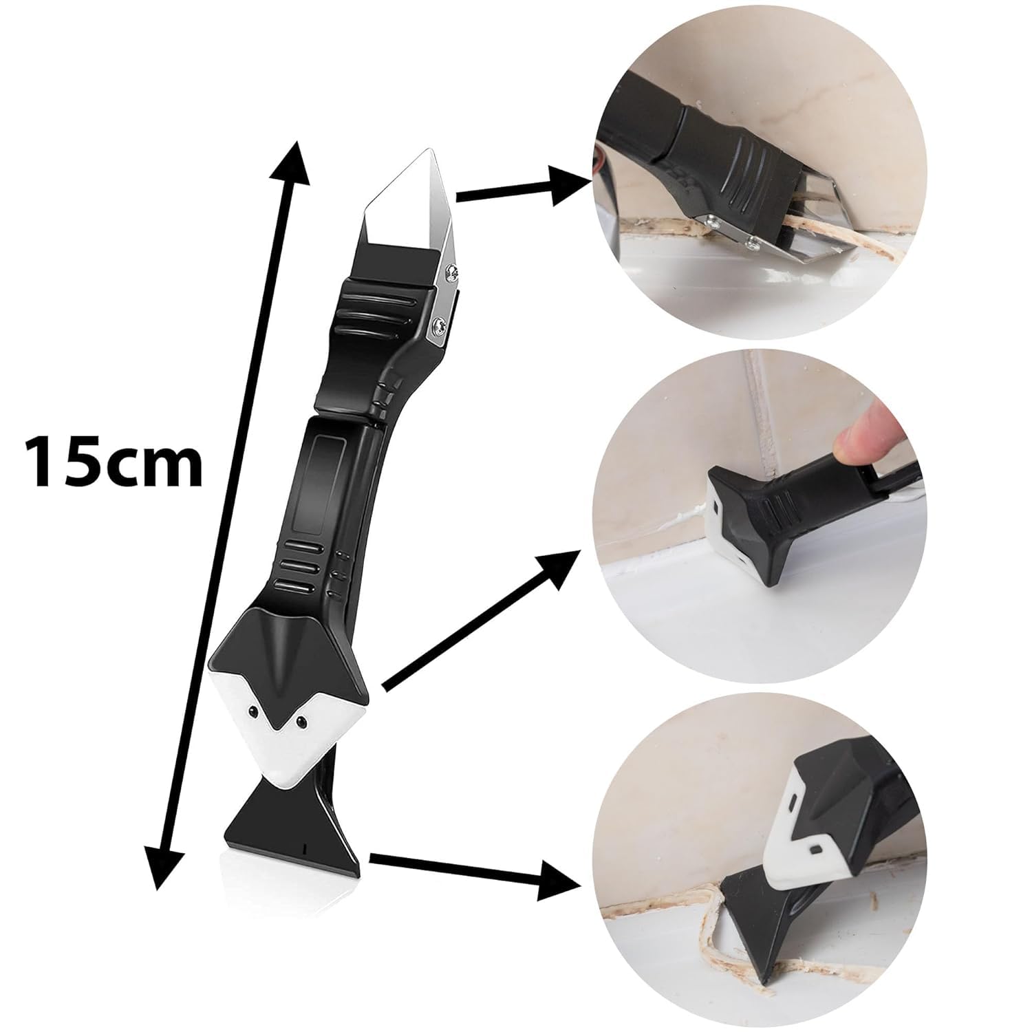 مزودة برأس من الفولاذ المقاوم للصدأ لسهولة كشط وإزالة السيليكون دون خدش الزليج أو الألومنيوم.
