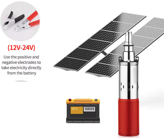 بجهد 24V ويمكن تشغيلها بالطاقة الشمسية أو بطارية 12 فولت أو باور سبلاي، ما يعني أنك لستَ بحاجة للكهرباء أو البنزين.