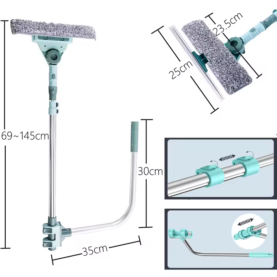 هذا المنظف التلسكوبي يأتي بطول يتراوح بين 69cm و145cm ليسمح لك بتنظيف النوافذ العالية بسهولة وبدون الحاجة إلى السلالم.