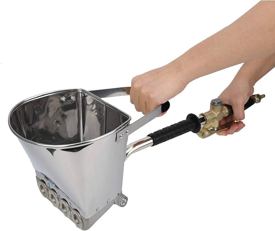 هذا مسدس رشّ المونة الإسمنتية يعمل بالهواء المضغوط، ومخصّص لأعمال التلييس ورشّ الإسمنت والجبس على الجدران والأسقف بسرعة وكفاءة.
