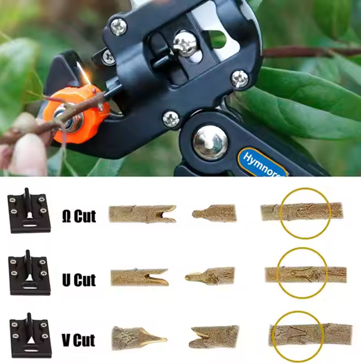 مزودة بثلاث شفرات مختلفة (U، V، Ω) لقطع متطابق حسب نوع الغصن، لضمان نسبة نجاح عالية