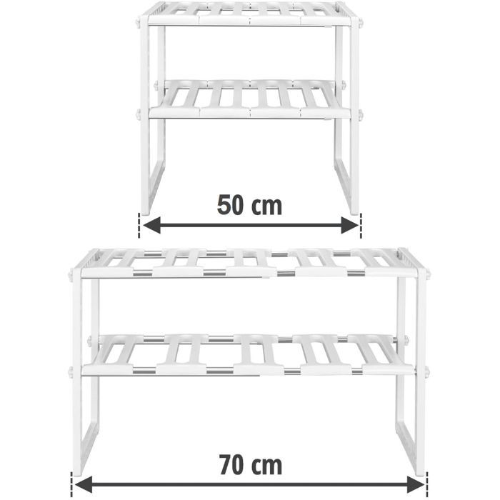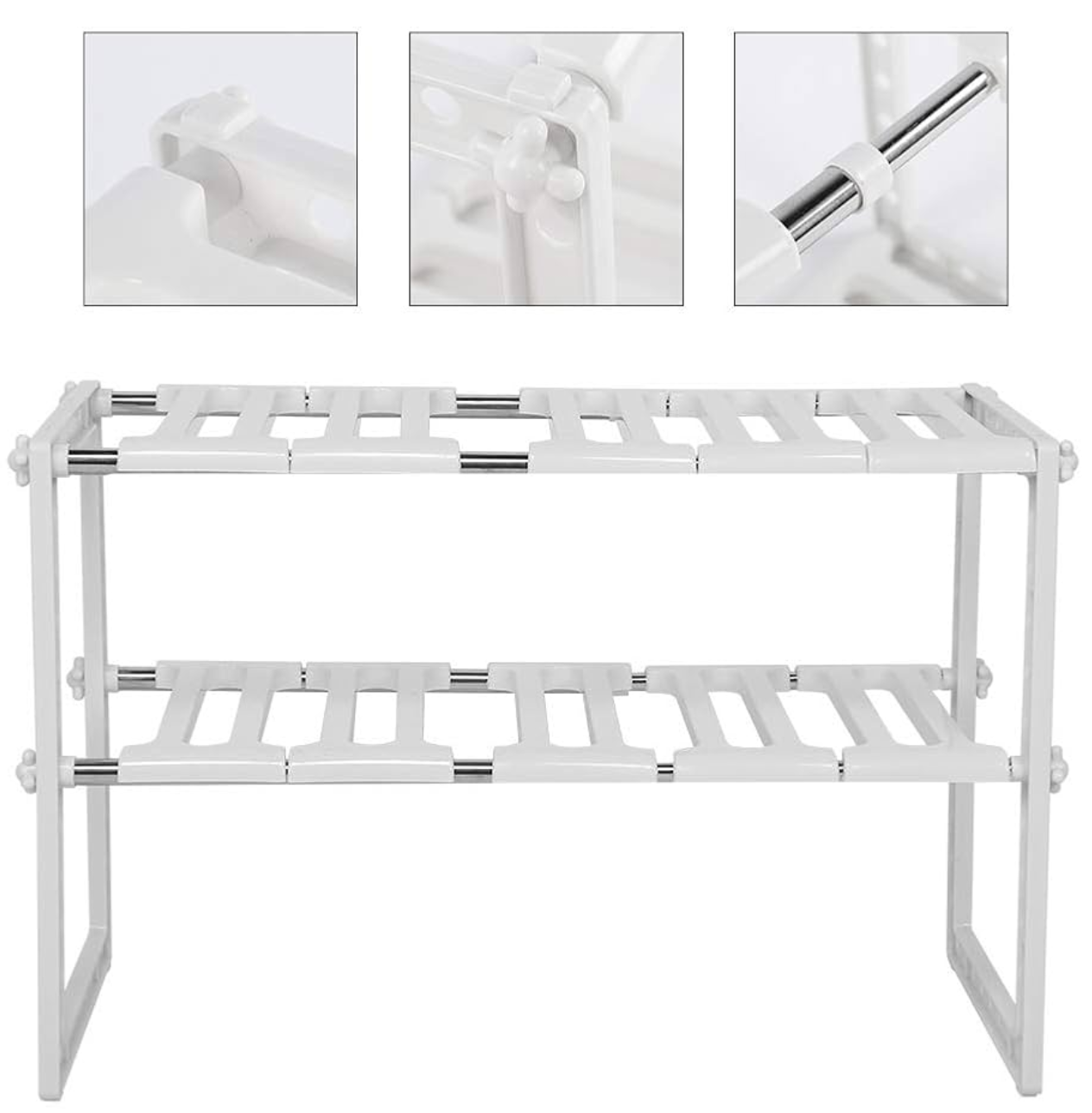 رف تخزين عملي ذو طابقين يتيح استغلال المساحات الصغيرة في المطبخ أو الحمام أو البلكونة ويوفر مساحة إضافية منظمة.