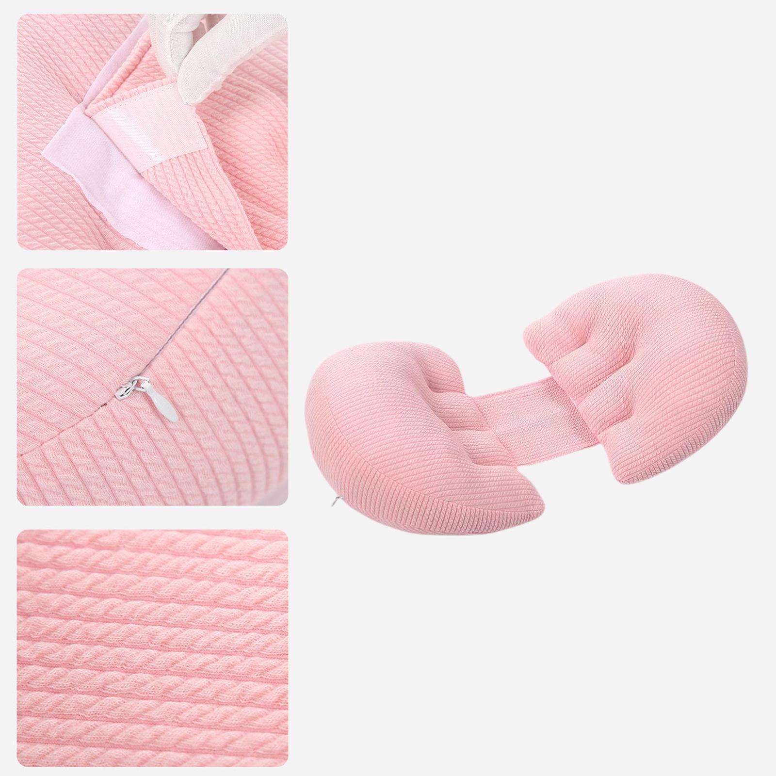 وسادة دعم الحمل المزدوجة القابلة للتعديل مصممة خصيصاً لدعم البطن وأسفل الظهر في نفس الوقت، لتمنح الحامل وضعية نوم جانبية آمنة ومريحة.
